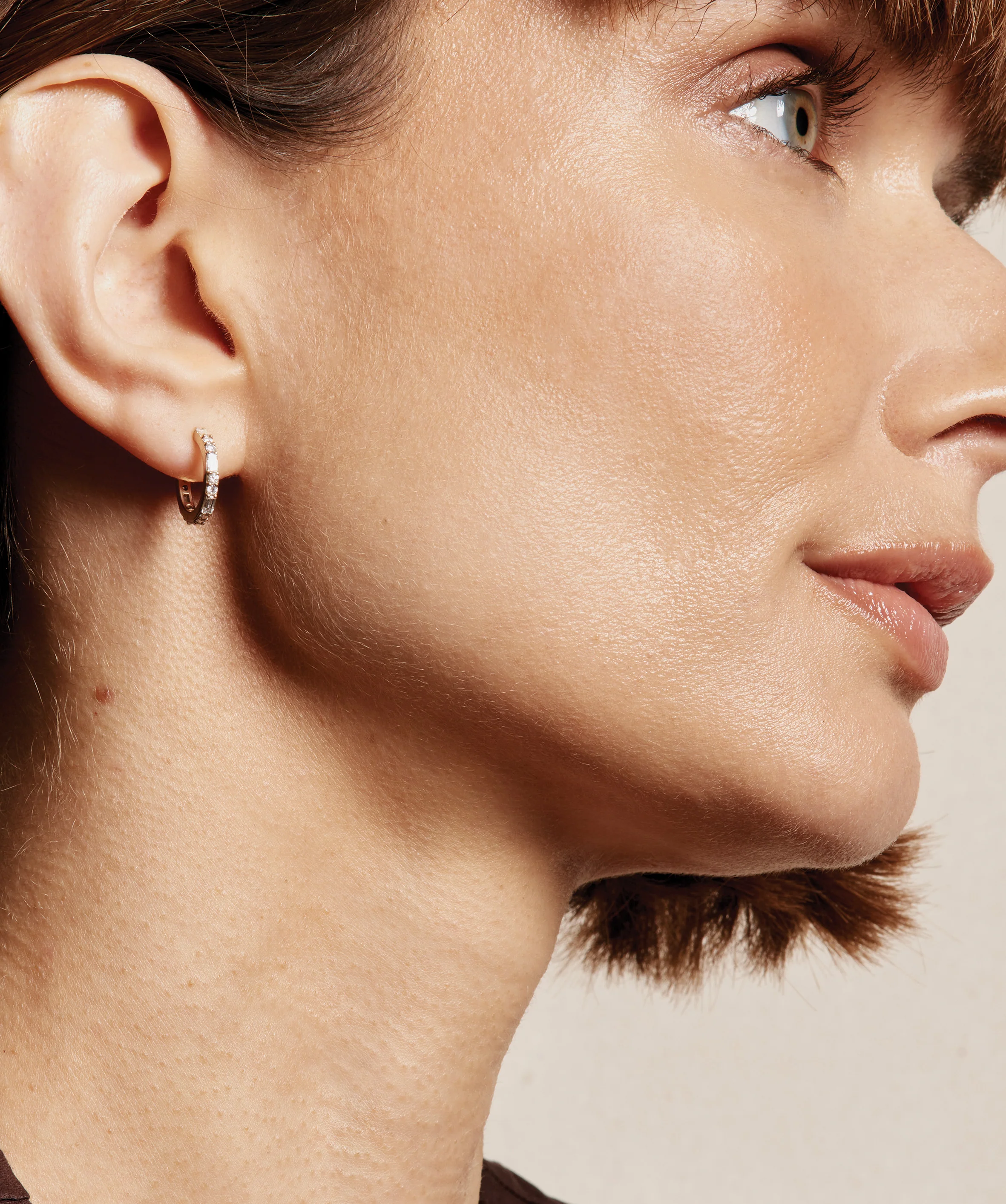 Our popular Baguette & Round Diamond Ring reimagined as delicate, everyday diamond hoops. Tastefully coordinate with your wedding ring to complete a bridal look, celebrate an anniversary or simply add a touch of luxury to your daily jewellery uniform with these chic hoops.