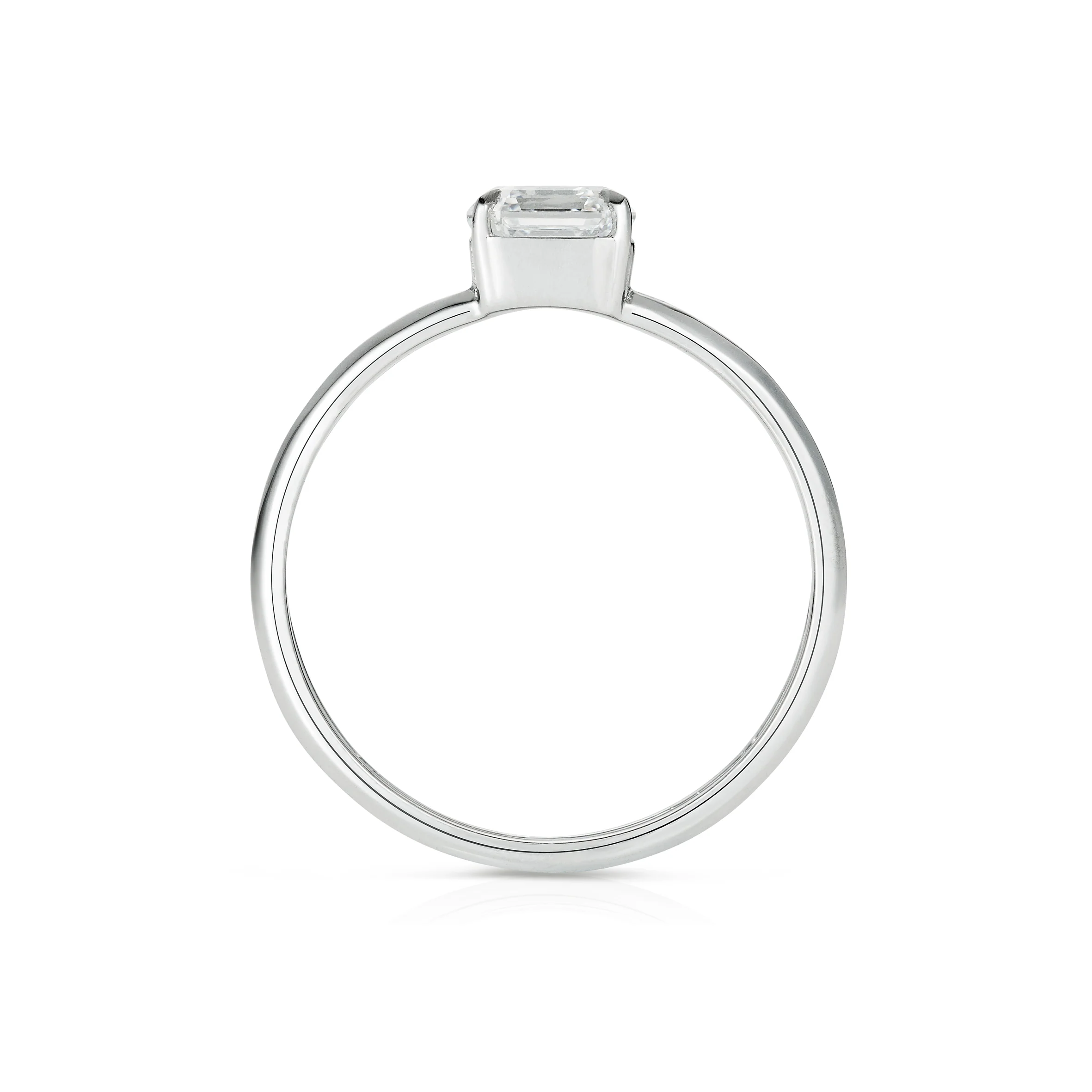 Parallel double bands and an Asscher cut white diamond: simple and strong design at its finest. The Carina ring is part of our collection of classic solitaires with an unexpected twist, in equal parts bold and elegant.