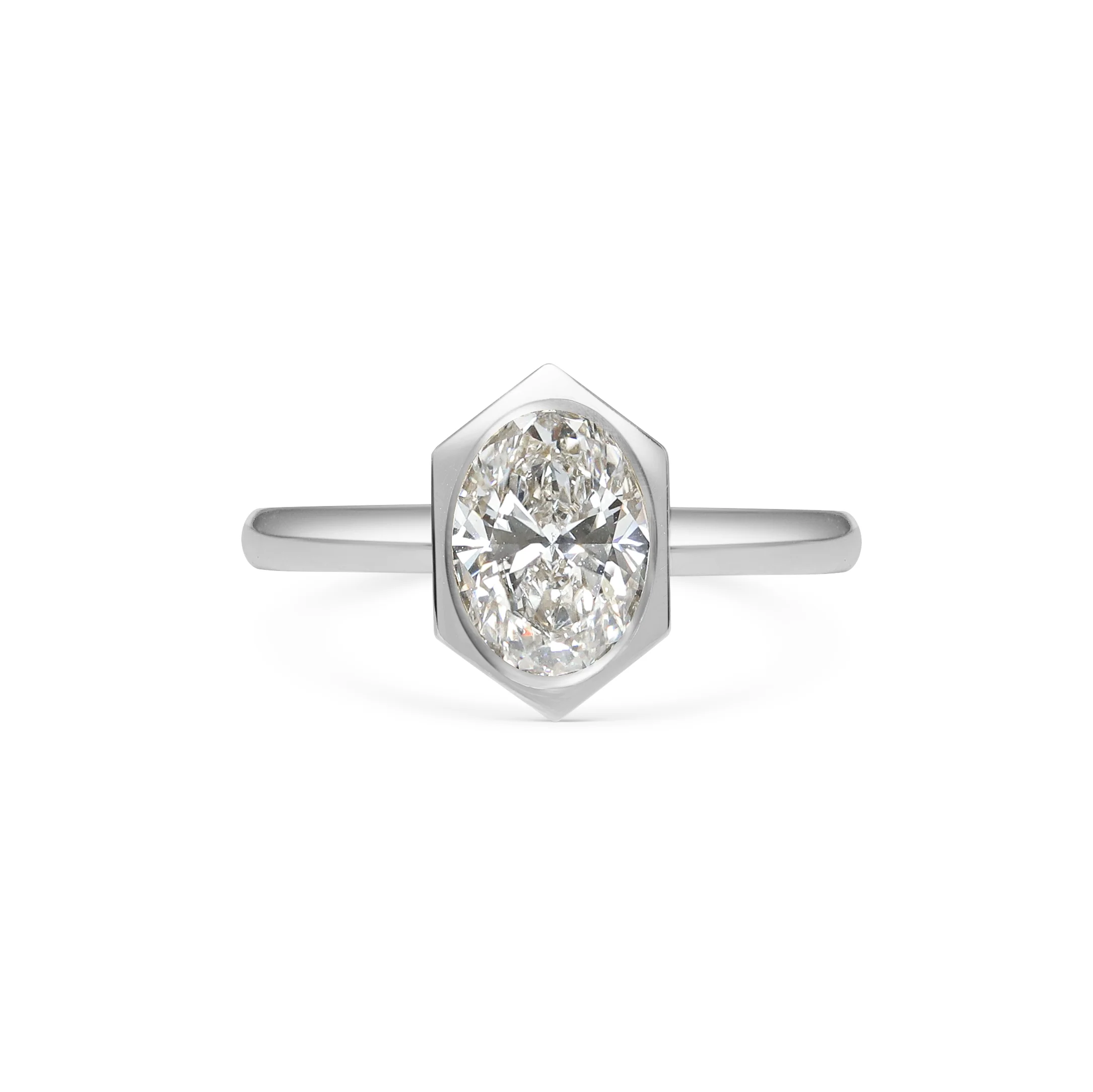 For those who love the elegance of an oval diamond, but want something a bit bolder than a classic solitaire ring. Our signature hexagon border makes the Constance Ring the best of both worlds: a beautiful, clean solitaire design with a whole lot of personality.