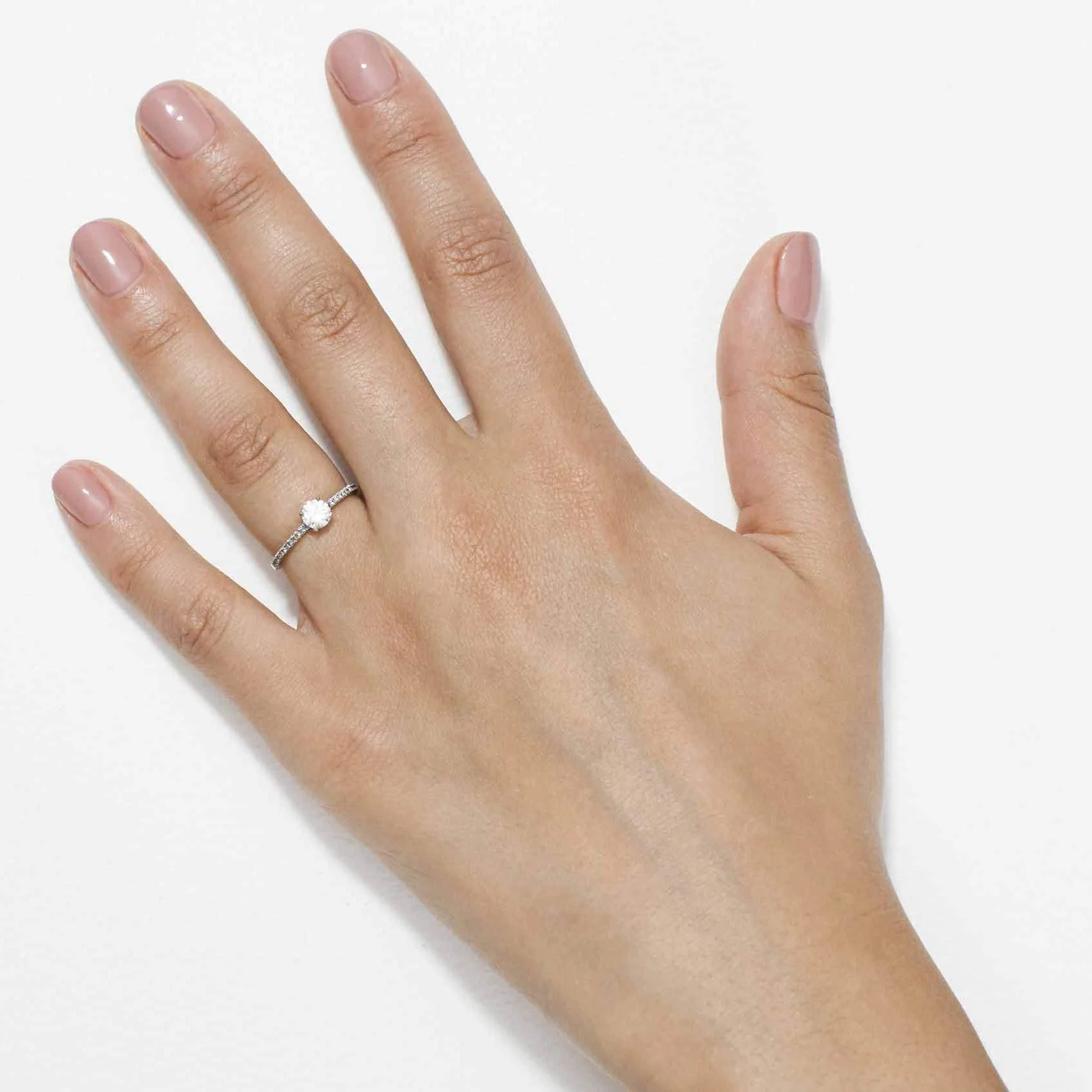 Simple and stylish, the Contra Round ring comprises of a round brilliant cut white diamond solitaire finished off with a grey diamond micropavé band (but could be set with white diamonds if you prefer).