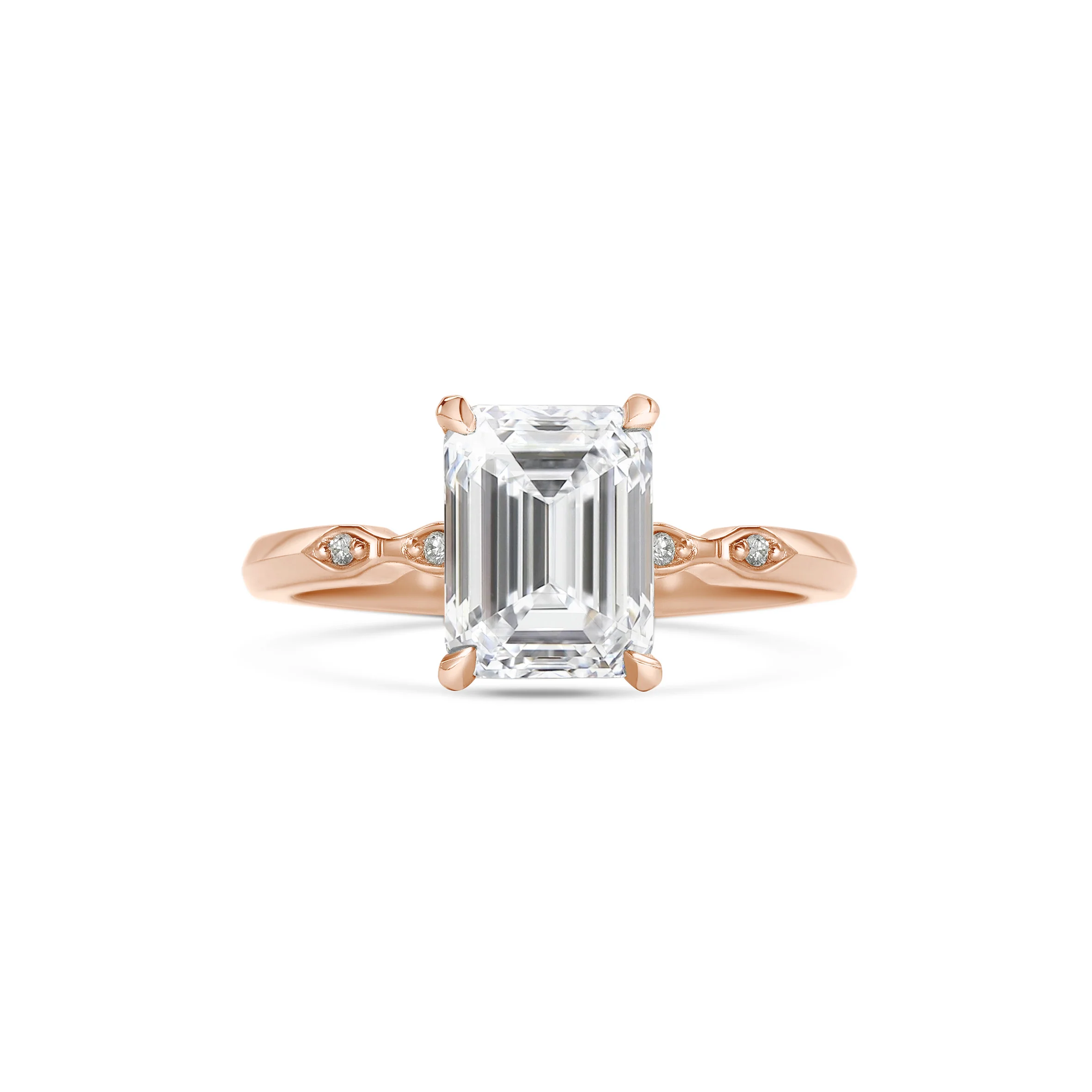 Our organic, diamond-set Evelyn band meets the sleek geometry of an emerald cut diamond in this vintage-inspired engagement ring. Elegant, but a little different.