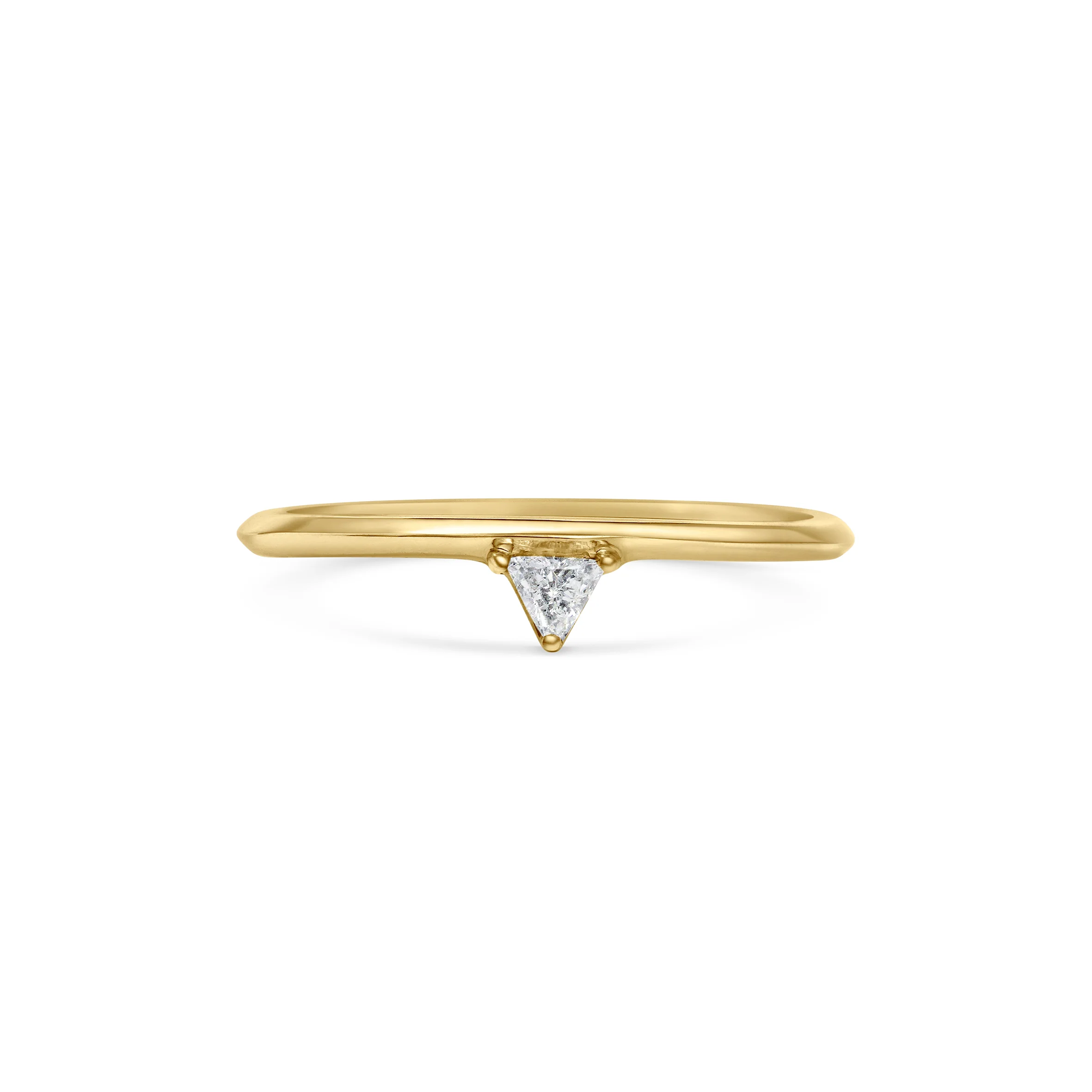 The Ilud Ring features a small white triangle diamond set on our signature knife-edge band.