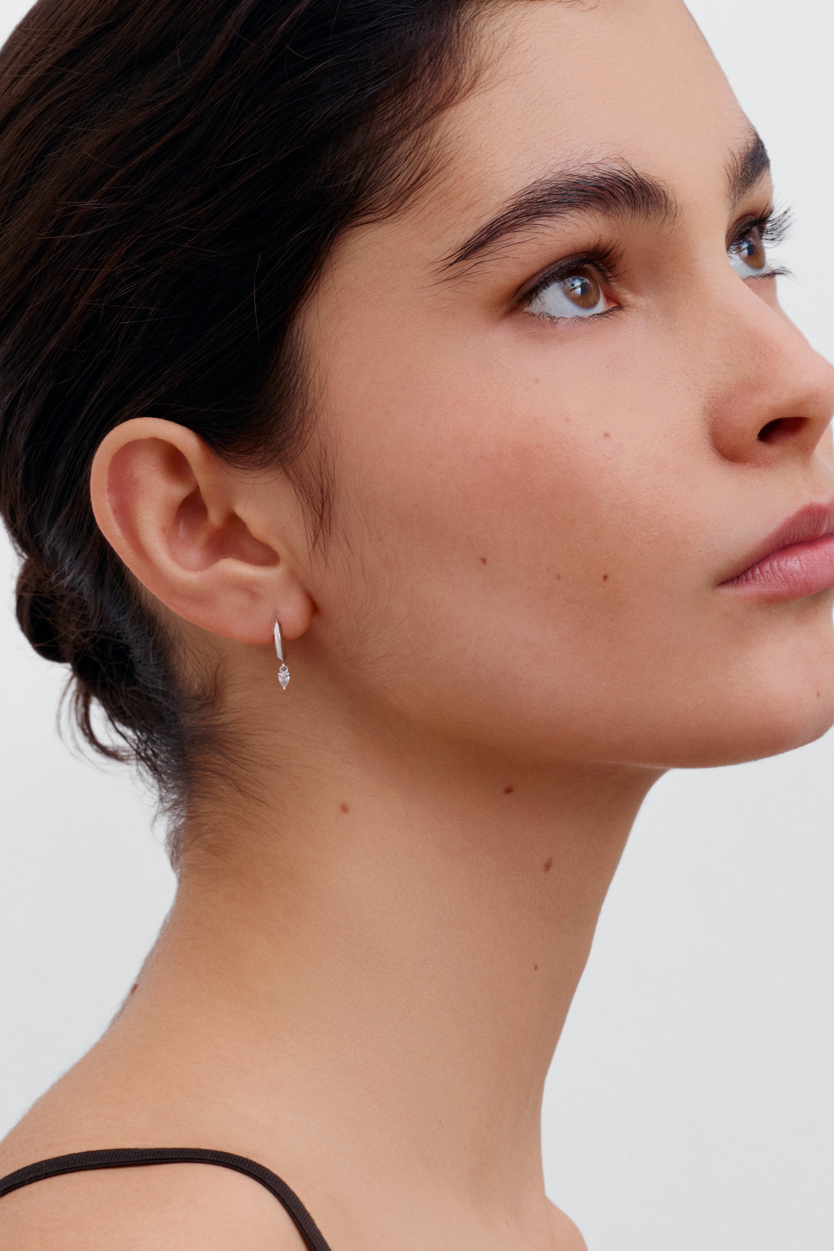 The Knife Edge Hoop Earrings with Pear Diamonds feature our signature knife edge design with a delicate diamond droplet suspended beneath them. These earrings are bought as a pair.