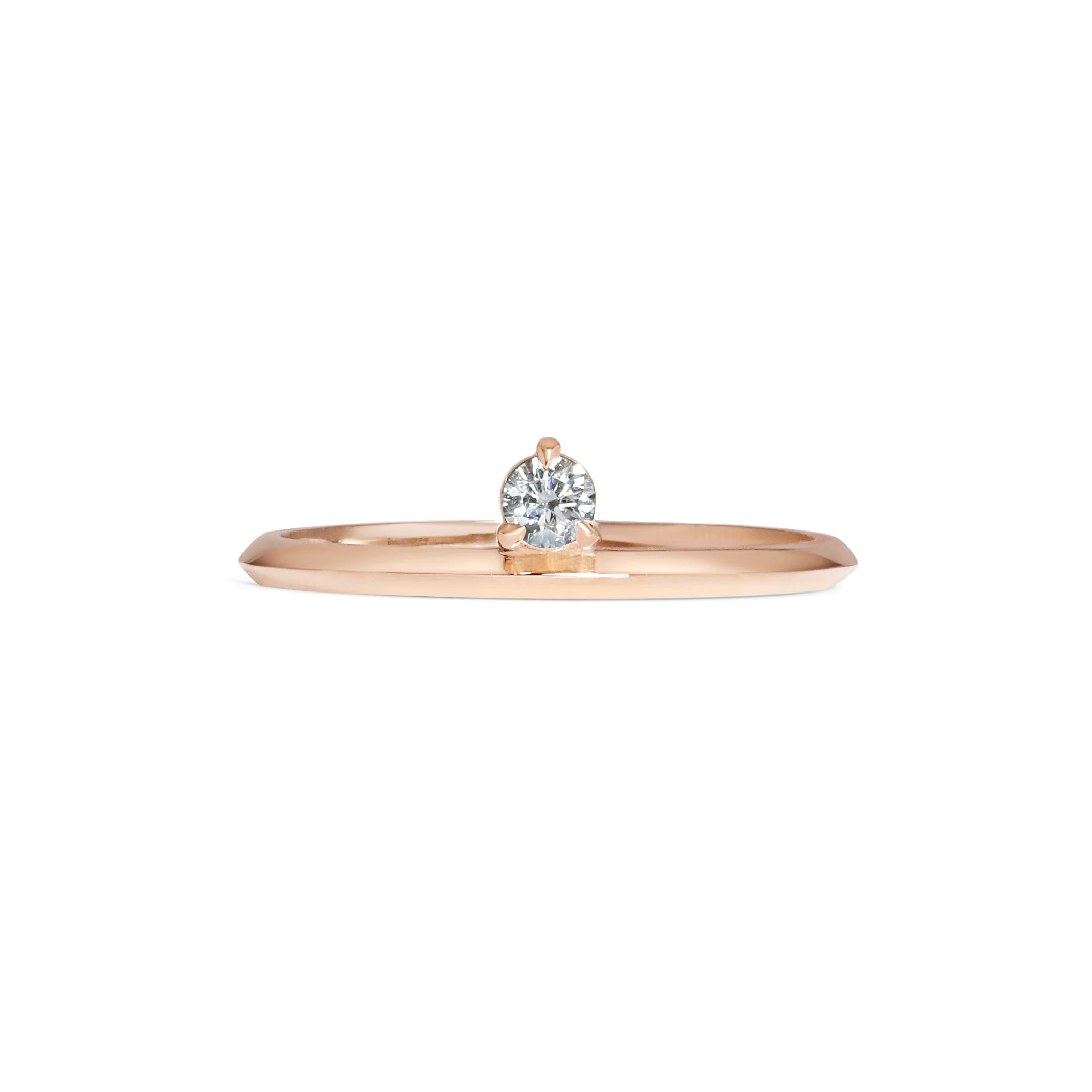 The Round Ilud Ring features a small white round diamond set on our signature knife-edge band.