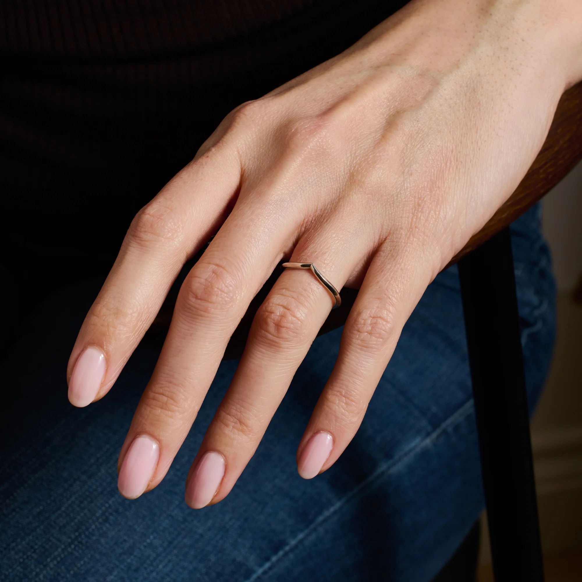 The Sagitta Band is an ideal solution to lower set engagement rings, as its delicate V-shape curve accommodates all different shapes of stone. Its elegant silhouette and knife-edge band makes the Single Sagitta Band an elegant and modern choice.